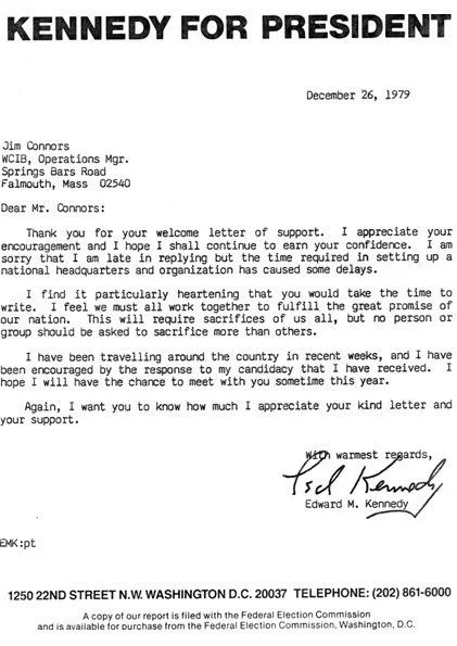 1977: JC makes the acquaintance of Edward M. (Ted) Kennedy