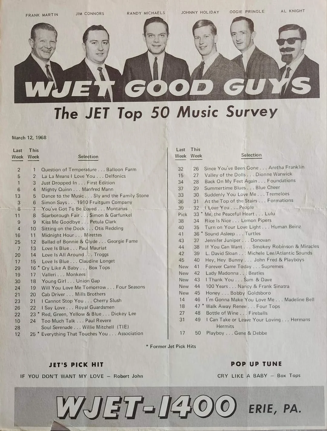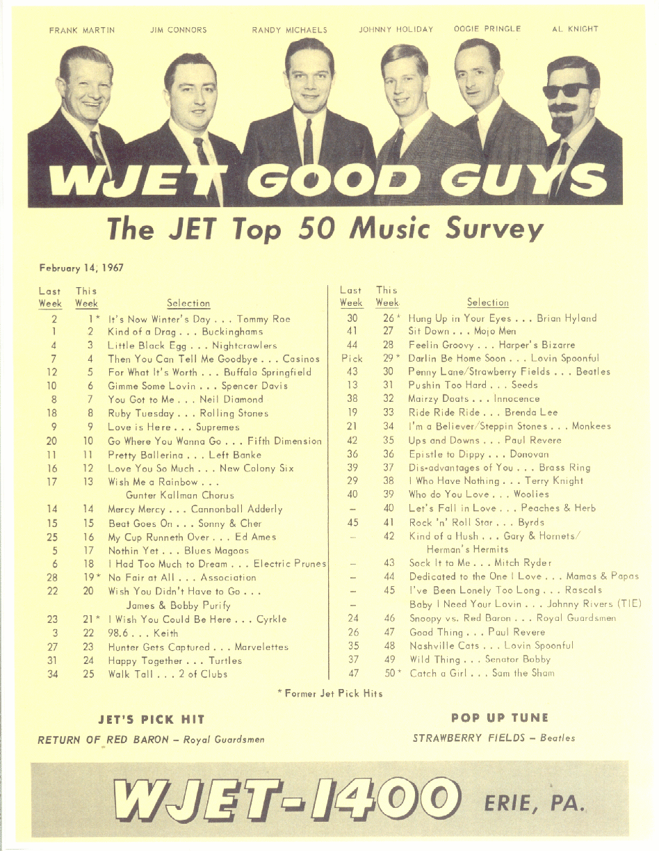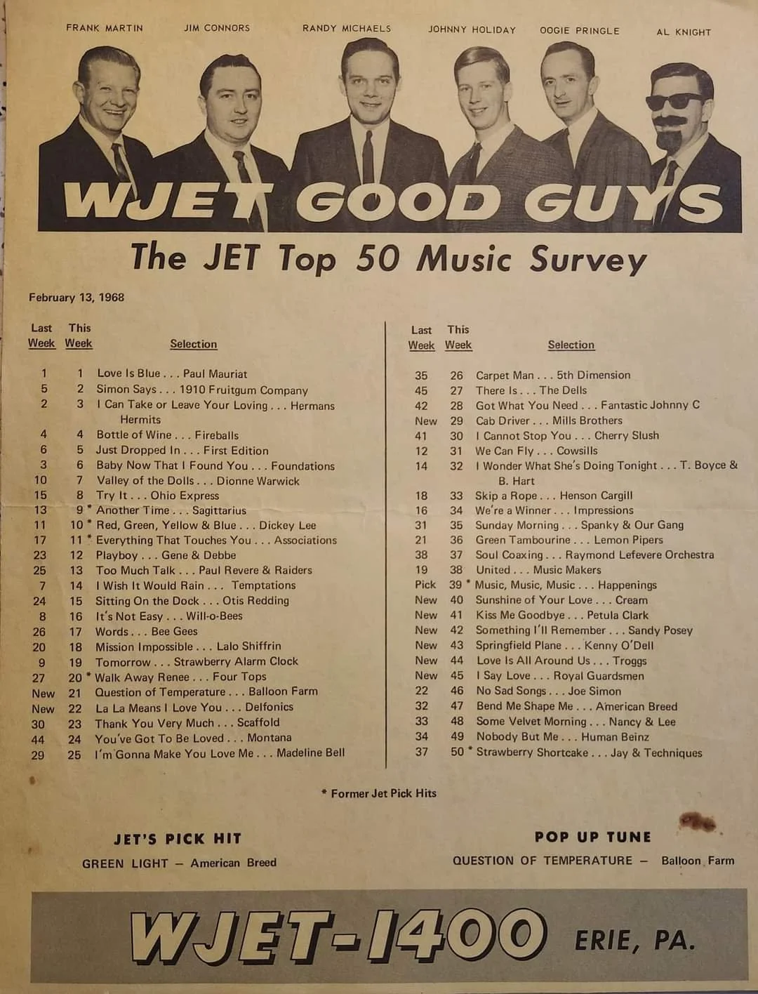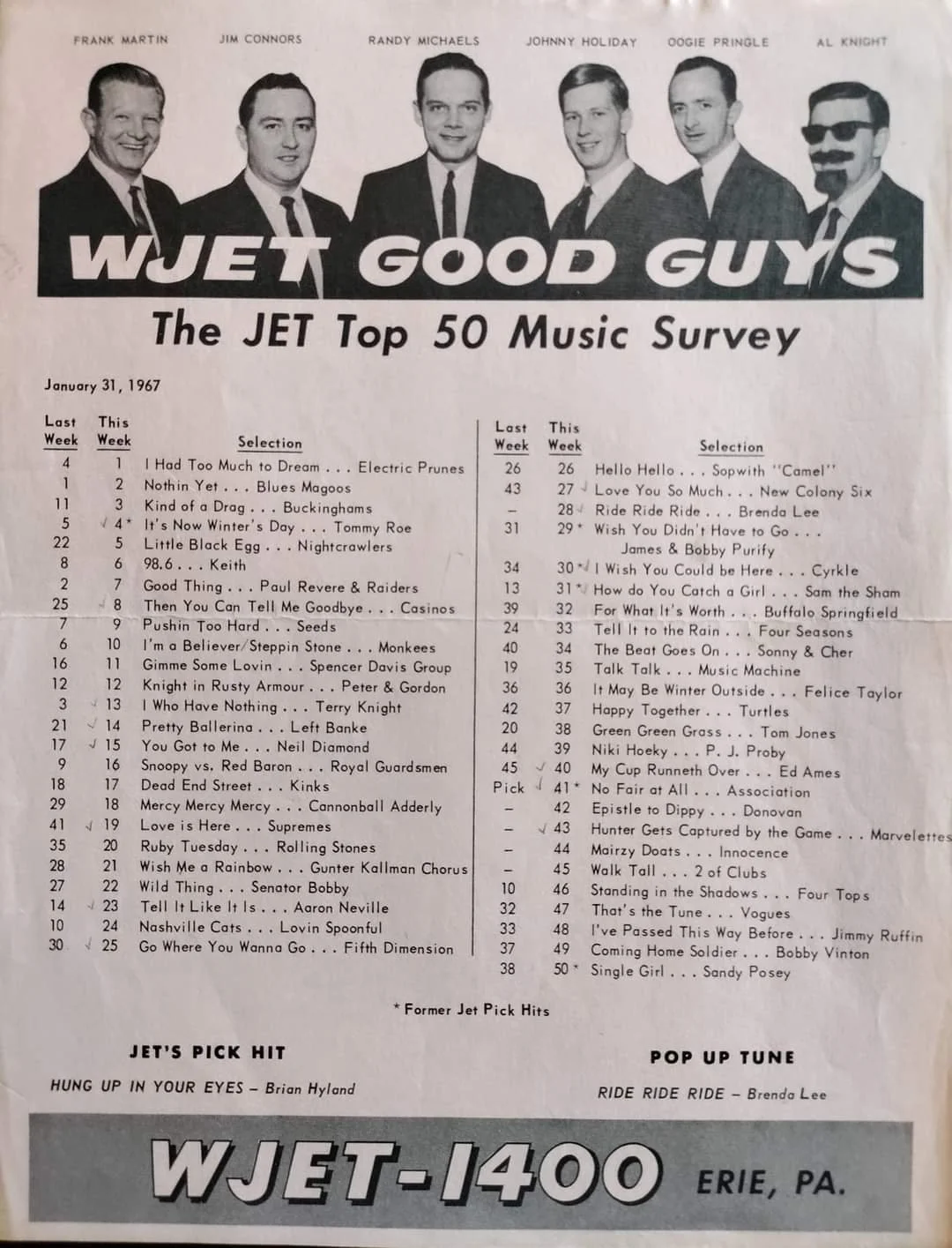 The story began a few years earlier with a forgotten single called “Hanky Panky.” Originally recorded in 1964, the track sat unnoticed until a bootleg copy surfaced in Pittsburgh in 1965. Local DJs began playing it, and the response was explosive across western Pennsylvania. By the time it reached Erie, WJET and JC gave it constant rotation, pushing the sound across the city, into northeastern Ohio, throughout Pennsylvania, and into southern Ontario. That wave of airplay turned a discarded single into a regional sensation. It was this surge of attention that caught the interest of Roulette Records, which signed Tommy James and the Shondells and set them on a path to national recognition.