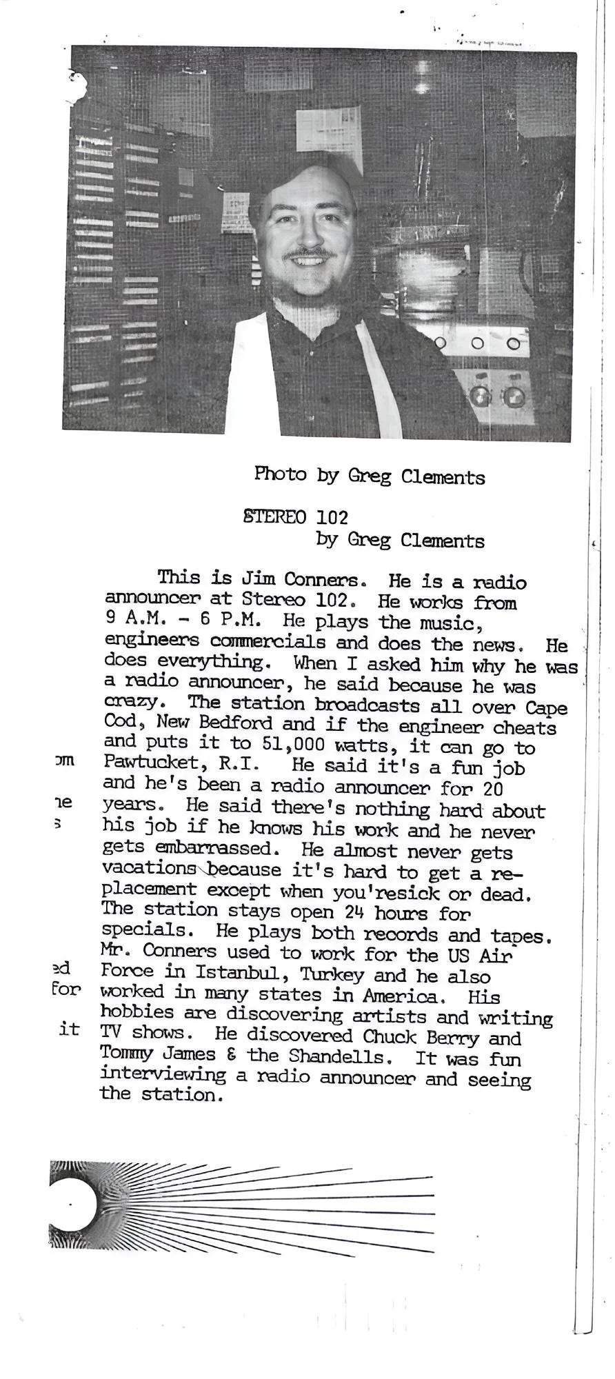 WCIB, known on air as Stereo 102, was owned by Cape Cod Broadcasting and competed directly with other local FM stations such as WQRC in Hyannis. While Boston stations like WRKO and WBZ carried into the Cape with their powerful 50000 watt signals, WCIB carved out its identity by offering a distinctly Cape Cod voice. JC made sure the sound of the station reflected the region itself: lively, personable, and tied to community life.