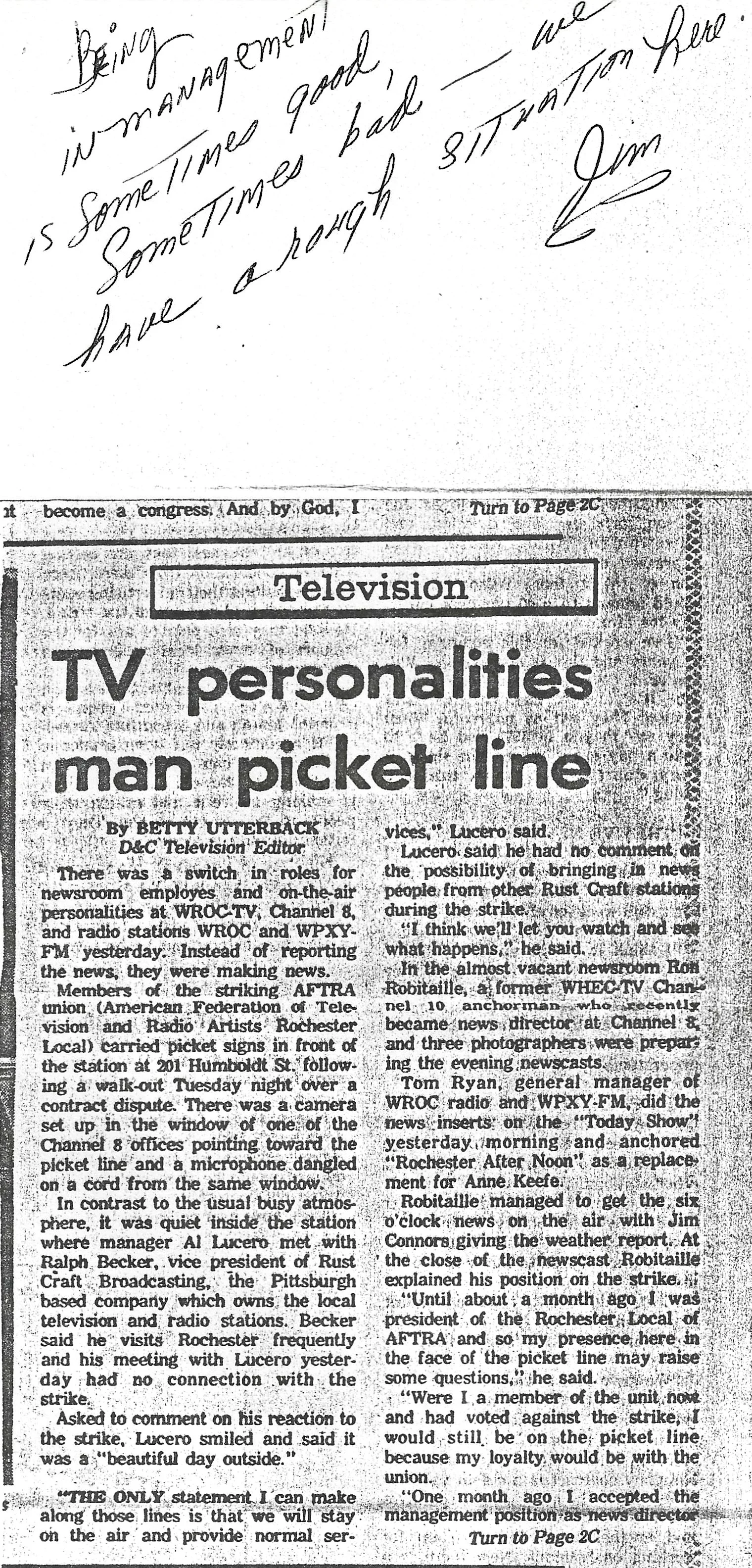 4. Utterback, B. TV Personalities Man Picket Line. *Rochester Democrat & Chronicle (D&C)*