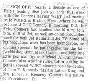 1965: JC begins his civilian broadcasting career, joining WJET in Erie, Pennsylvania.
