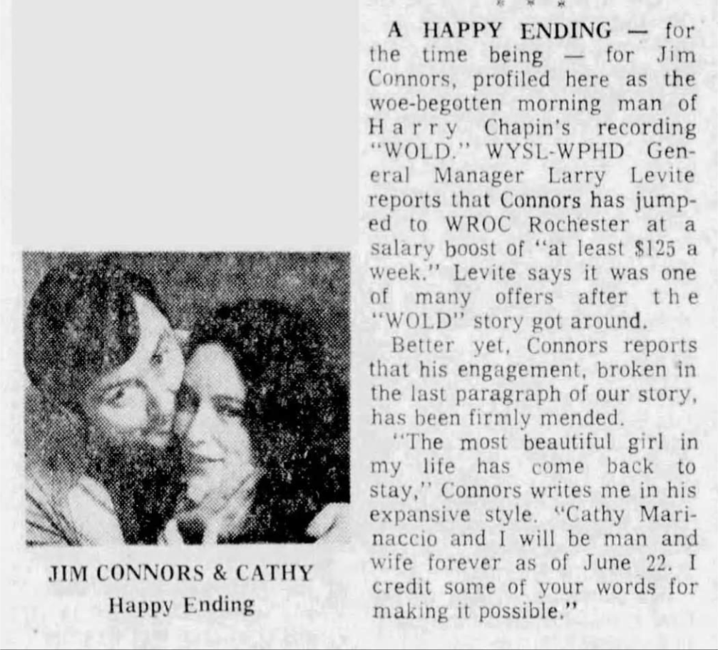 Those reflections lingered with Chapin and became the foundation for WOLD, the song he released in 1973 about a radio man whose career and family life bore the marks of years spent serving an audience. The seed of that song began in Boston, in his conversations with JC, where the realities of a broadcaster’s life were made clear.