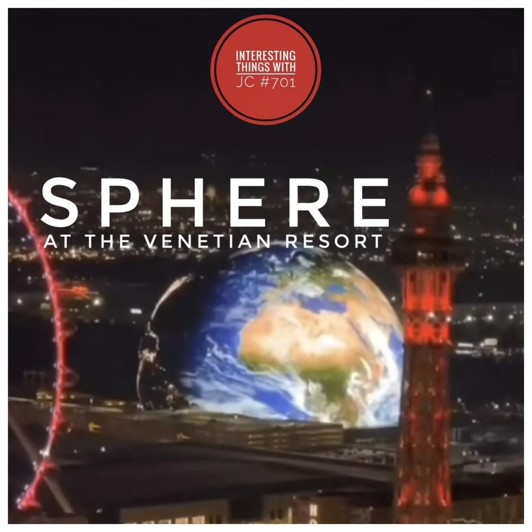 Interesting Things with JC #701: "Sphere at the Venetian Resort" - Experience the grandeur of the Las Vegas Sphere, the world's largest video screen, standing tall at 366 meters and captivating audiences with its stunning visuals. Discover how this architectural marvel is reshaping the Las Vegas skyline and solidifying its position as a premier entertainment destination.
